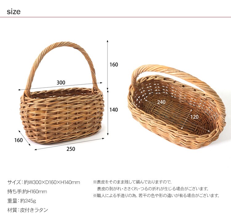 ※表皮をそのまま残して編んでおりますので、表皮の剥がれ・ささくれ・つるの折れが生じる場合がございます。