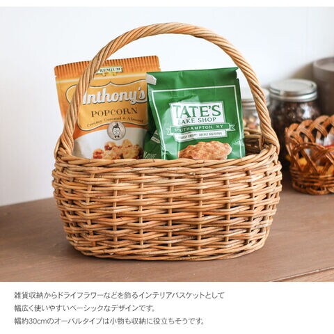商品説明:風合い豊かなラタンのオーバルバスケット。