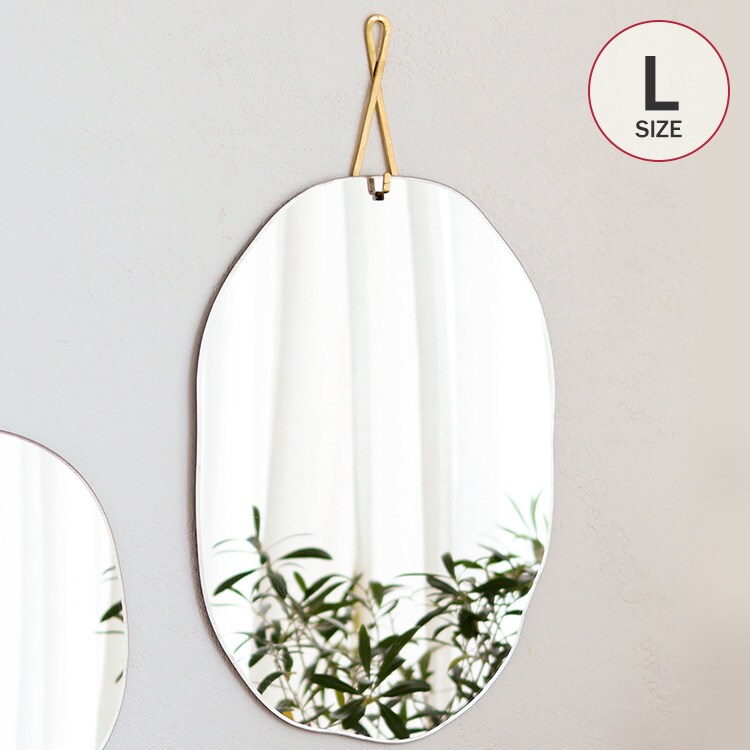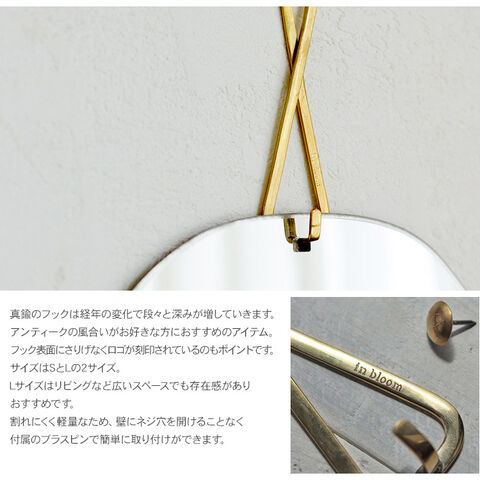商品説明:真鍮製のフックがワンポイントになった上品なウォールミラー。