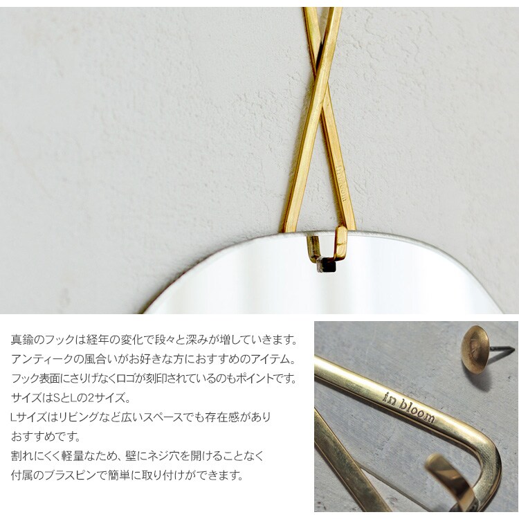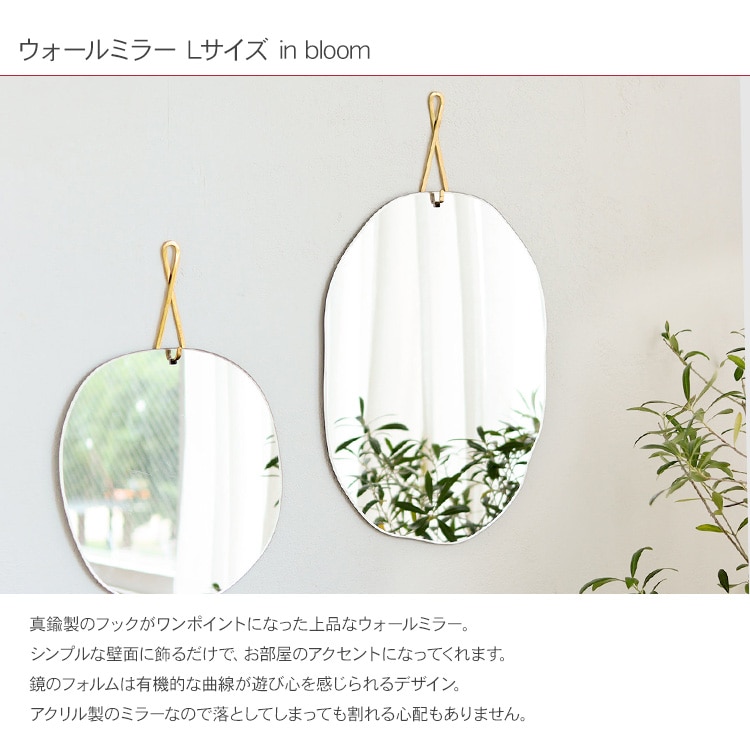 ブラス ウォールミラー Lサイズ in bloom 鏡 壁掛けミラー 真鍮 フック アクリルミラー おしゃれ シンプル アンティーク カフェ ショップ 北欧 インテリア リビング 玄関