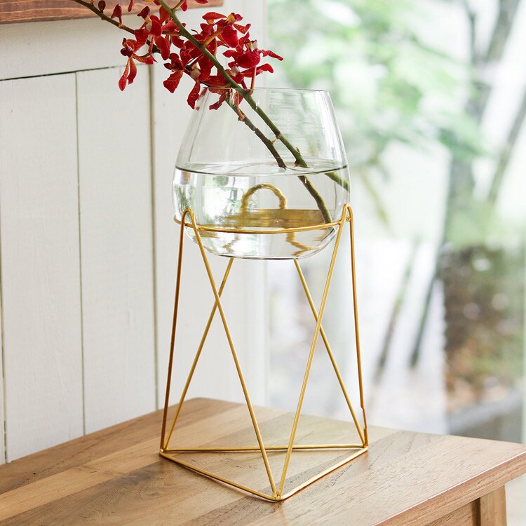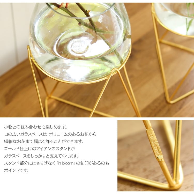 ゴールド仕上げのアイアンのスタンドがガラスベースをしっかりと支えてくれます。