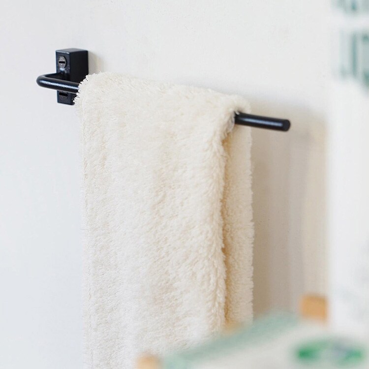 バーの片側を壁に取り付けるデザインなので、タオルをさっと掛けたり外したりする事ができます。