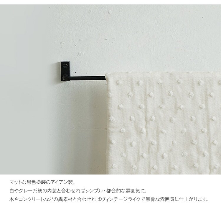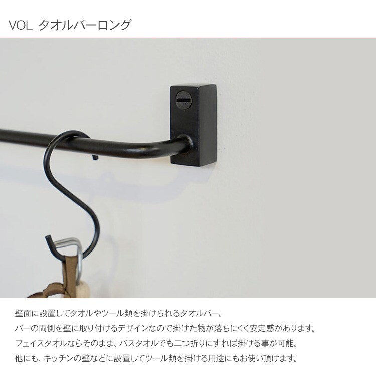 VOL タオルバーロング アイアン タオル掛け タオルハンガー キッチン トイレ 洗面所 アイアン 壁 DIY 北欧 インテリア おしゃれ シンプル
