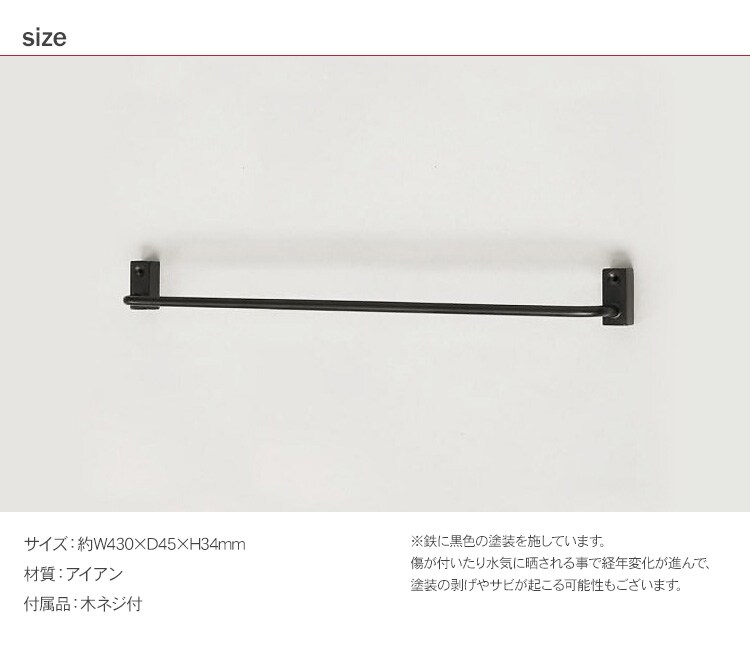 商品説明:バーの両側を壁に取り付けるデザインなので、掛けた物が落ちにくく安定感があります。