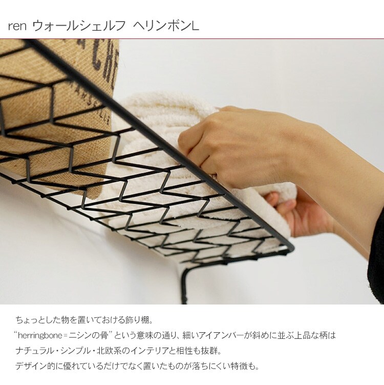 ren ヘリンボンシェルフL 壁面収納 ウオールラック ラック 棚 アイアン シンプル おしゃれ スタイリッシュ キッチン バス トイレ 洗面所
