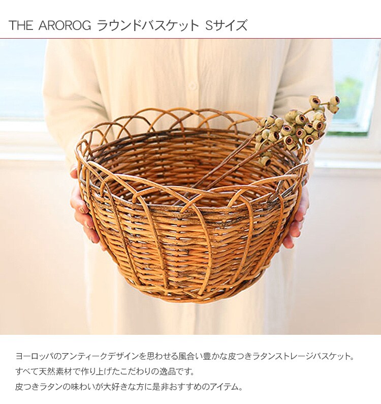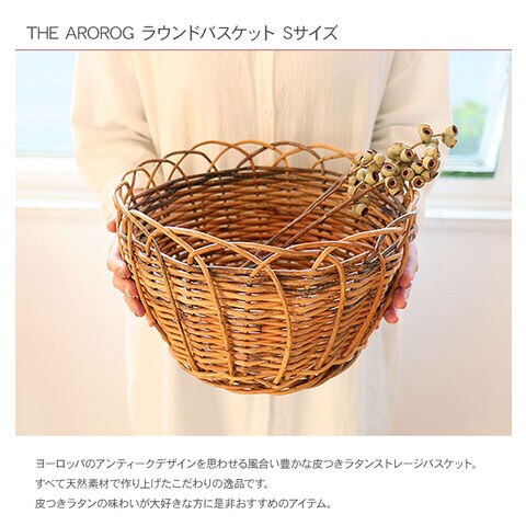 THE AROROG アラログ ラウンドバスケット Sサイズ バスケット かご カゴ 籐 ラタン 収納 小物収納 キッチン収納 北欧 インテリア 韓国 インテリア 雑貨