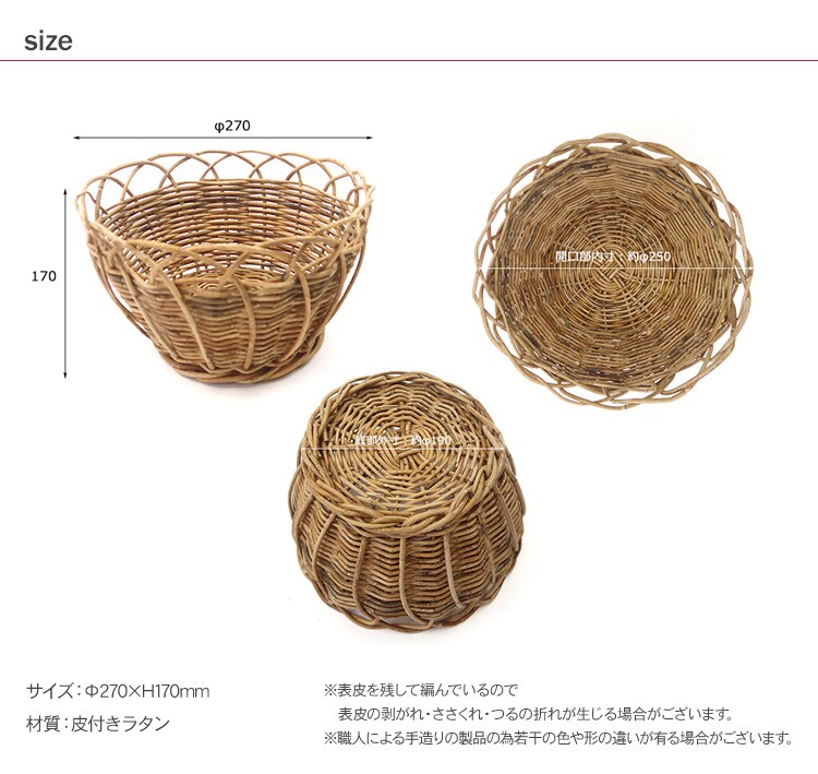 注意事項:※表皮をそのまま残して編んでおりますので、表皮の剥がれ・ささくれ・つるの折れが生じる場合がございます。