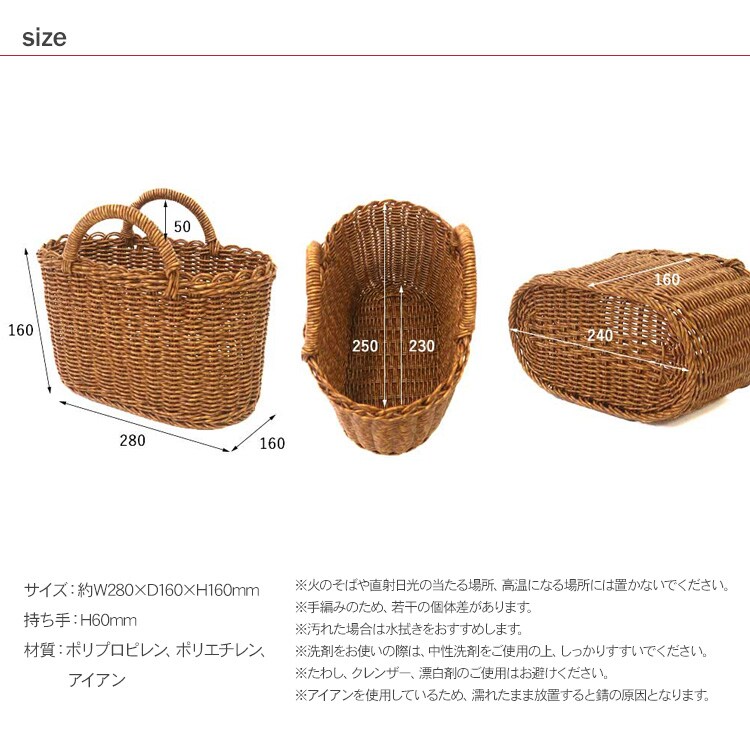 サイズ:約W280×D160×H160mm(持ち手H60mm)