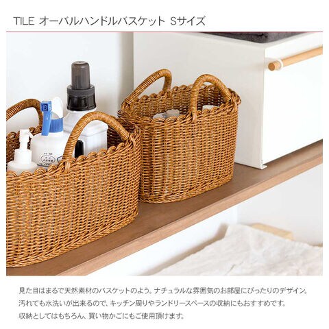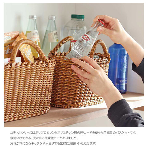 UTILE ユティル オーバルハンドルバスケット Sサイズ 収納バスケット 収納カゴ 水拭き ランドリー収納 キッチン収納 買い物かご エコバック 北欧 おしゃれ
