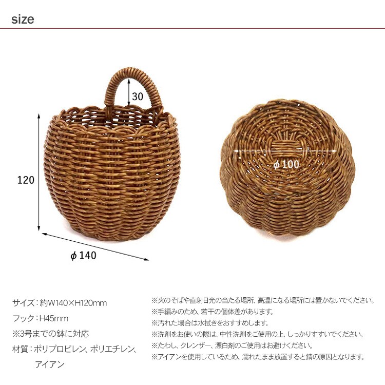 取手付きなので、S字フックなどで手軽に飾ることが出来ます。