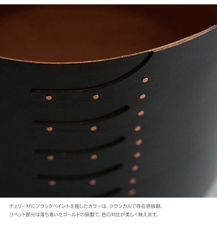 リベット部分は落ち着いたゴールドの銅製で、色の対比が美しく映えます。