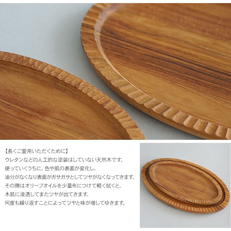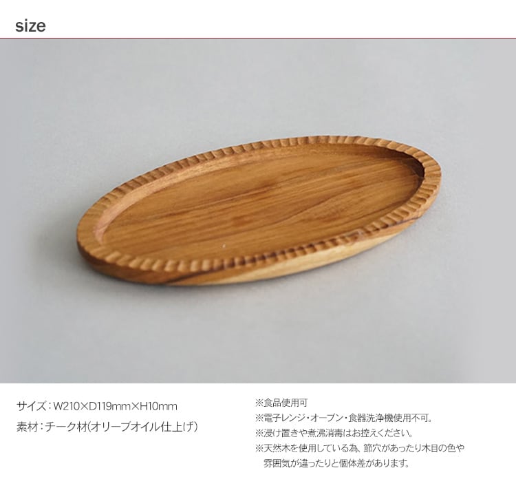 チーク オーバルトレイ S 木製 トレイ ウッドプレート モーニングプレート ランチプレート ディスプレイ 北欧 インテリア ナチュラル