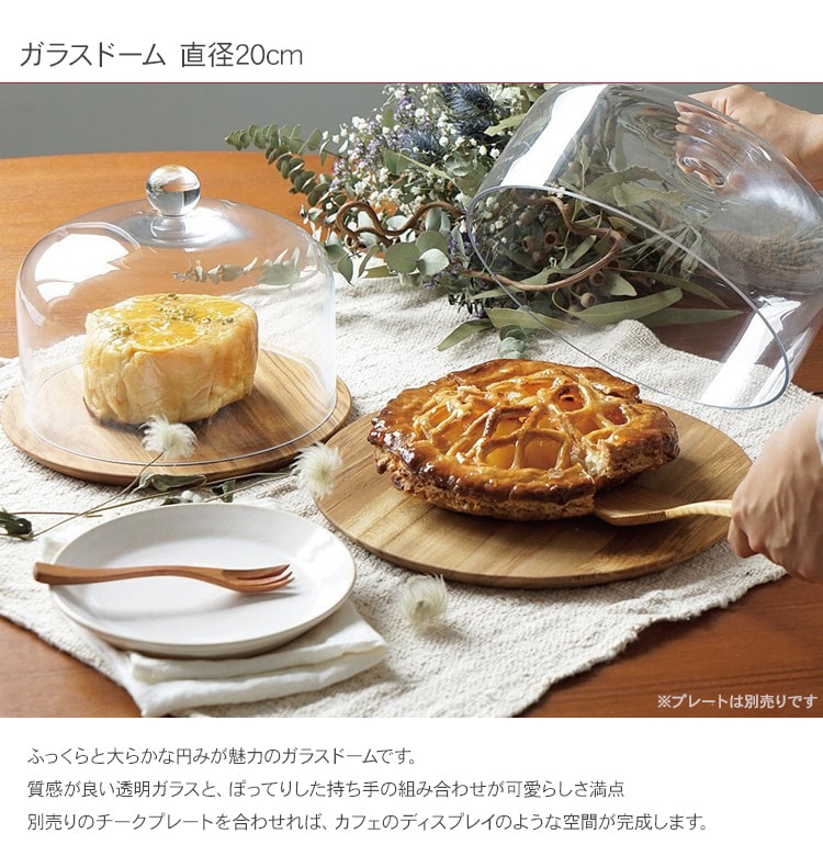 ガラスドーム200 _PP02 ガラス ケース ウッドプレート モーニングプレート ランチプレート ディスプレイ 北欧 インテリア ナチュラル