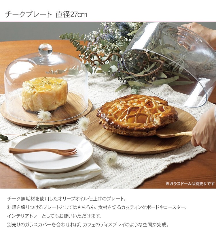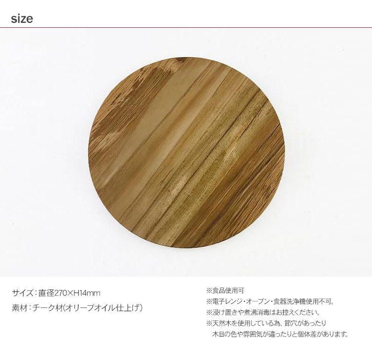 チークプレート270 木製 トレイ ウッドプレート モーニングプレート ランチプレート ディスプレイ 北欧 インテリア ナチュラル