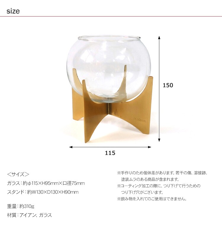 商品説明:見るだけで涼しげなテラリウムにもぴったりなガラスボウルベース。