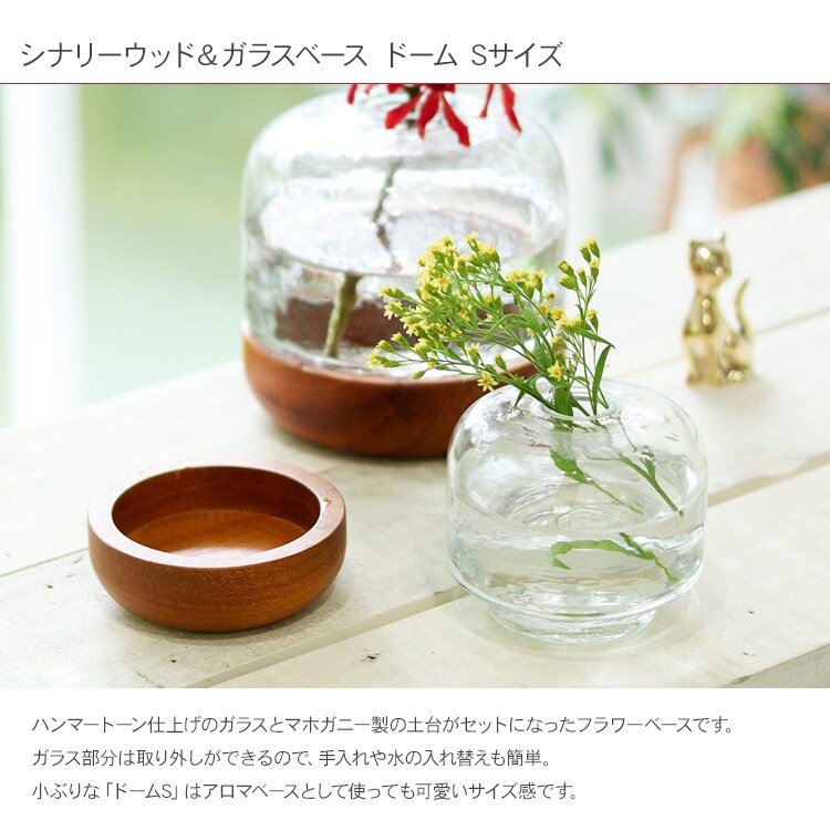シナリーウッド&ガラスベース ドーム Sサイズ _PP02 フラワーベース ガラ花瓶 ガラスボール 花器 アロマディフューザー おしゃれ シンプル カフェ ショップ 北欧 インテリア リビング 玄関