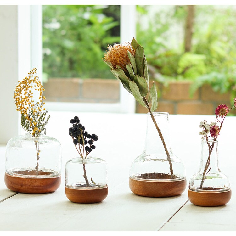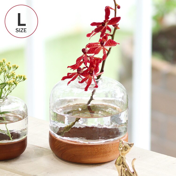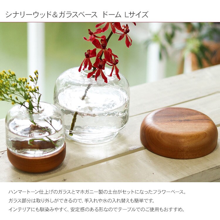 シナリーウッド&ガラスベース ドーム Lサイズ _PP02 フラワーベース ガラス 花瓶 水槽 花器 アロマディフューザー おしゃれ シンプル 木 カフェ ショップ 北欧 インテリア リビング 玄関