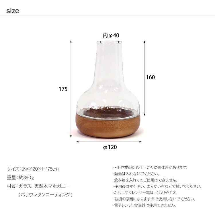 商品説明:ハンマートーン仕上げのガラスとマホガニー製の土台がセットになったフラワーベースです。