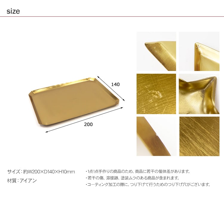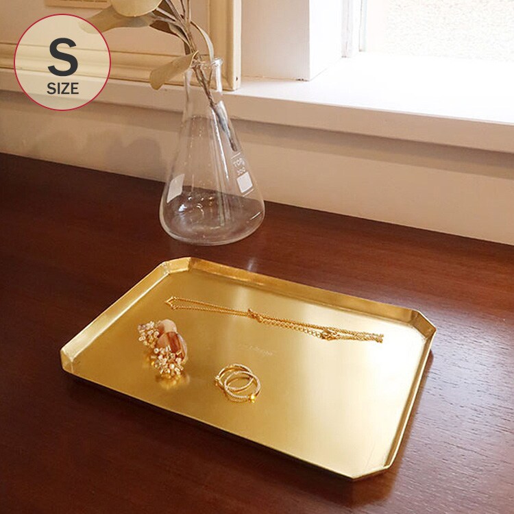 シンプルな真鍮風のトレイは、全てハンドメイドなので、1点1点違った風合いが楽しめます。
