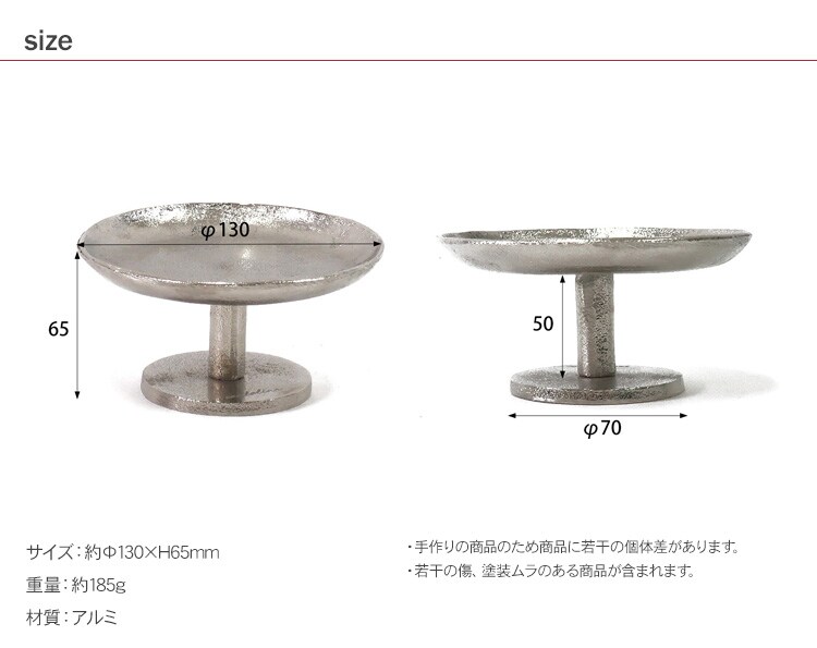 商品説明:アルミ本来のシルバー色を活かしたハンドメイドのアルミスタンドトレイ。
