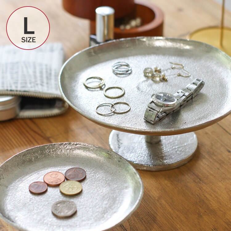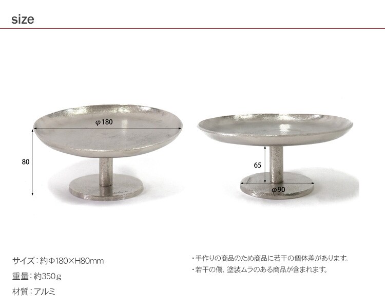 商品説明:アルミ本来のシルバー色を活かしたハンドメイドのアルミスタンドトレイ。