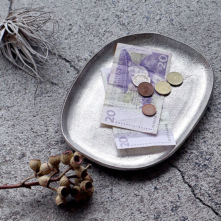 商品説明:アルミ本来のシルバー色を活かしたハンドメイドのアルミトレイ。