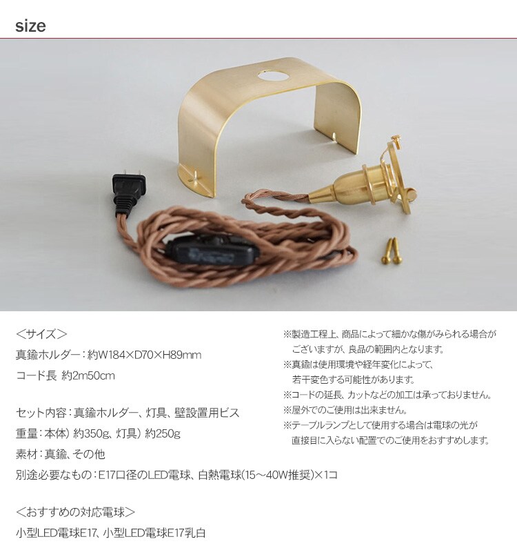 セット内容:真鍮ホルダー、灯具、壁設置用ビス