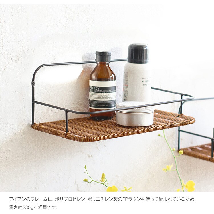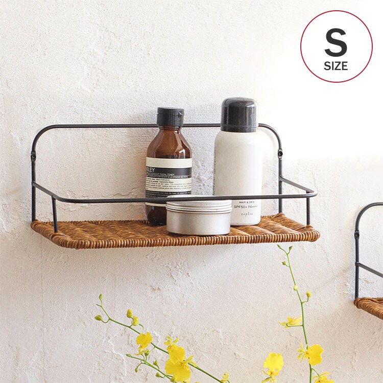 すっきりとしたアイアンのフレームが特徴のウォールシェルフ。