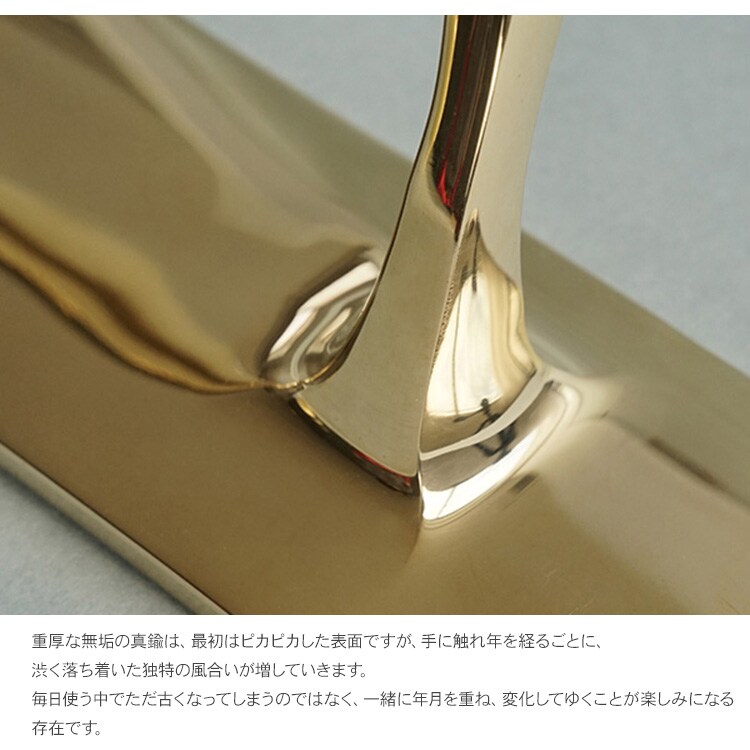 重厚な無垢の真鍮は、最初はピカピカした表面ですが、手に触れ年を経るごとに、渋く落ち着いた独特の風合いが増していきます。