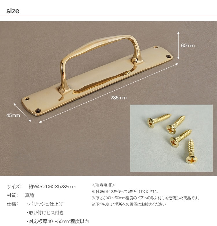「ハンドル ベータ ブラス」は、四隅をビスで固定して使用します。