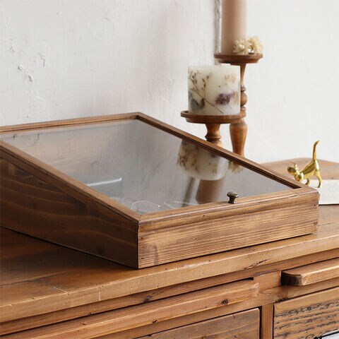 シンプルなデザインですが、アンティークのような風合いと一つ一つ違う木目や木の温かみが大切なコレクションをより引き立ててくれます。
