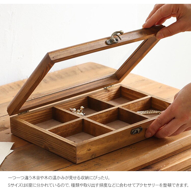 Sサイズは6室に分かれているので、種類や取り出す頻度などに合わせてアクセサリーを整頓できます。