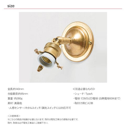 別途必要なもの:シェード:TypeA、電球:E26のLED電球(白熱電球60Wまで)、取付け用ビス2本