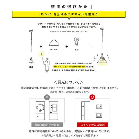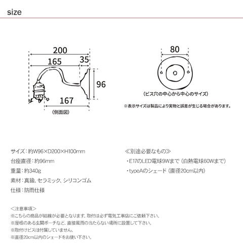 別途必要なもの:E17のLED電球9Wまで(白熱電球60Wまで)、typeAのシェード(直径20cm以内)