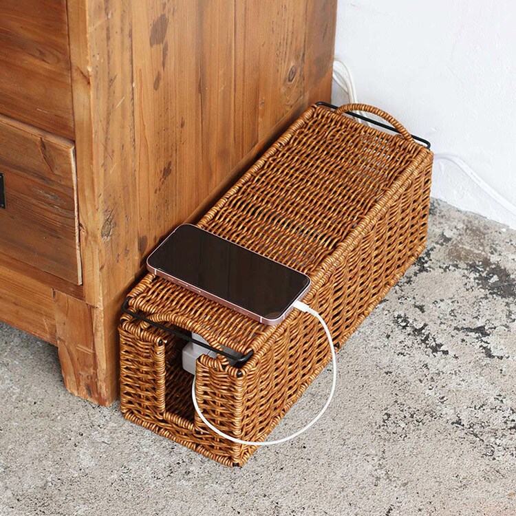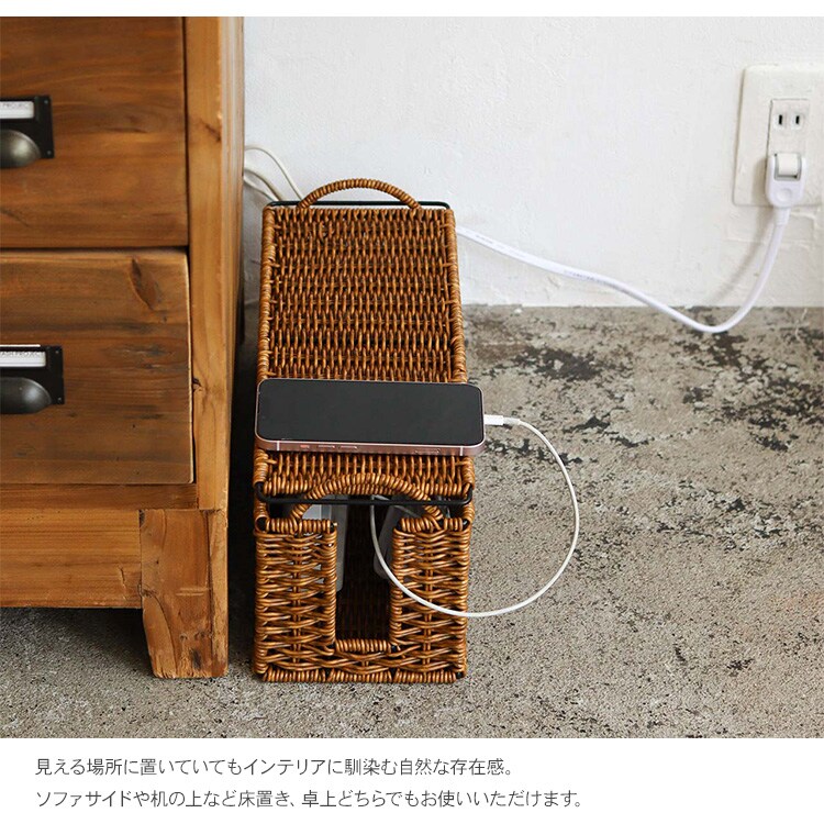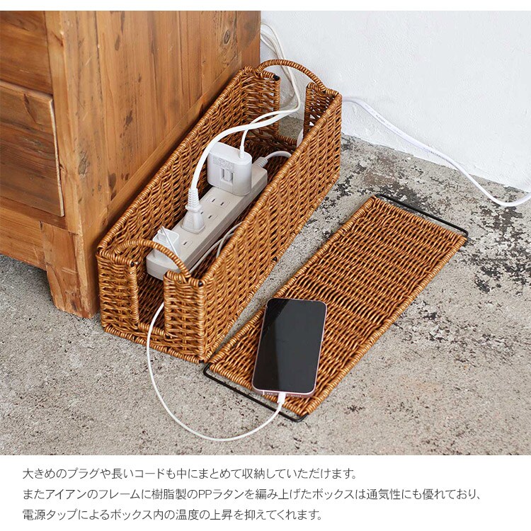 またアイアンのフレームに樹脂製のPPラタンを編み上げたボックスは通気性にも優れており、電源タップによるボックス内の温度の上昇を抑えてくれます。