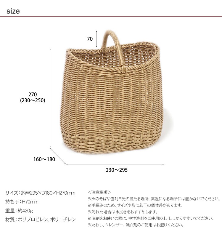サイズ:約W295×D180×H270mm(持ち手:H70mm)