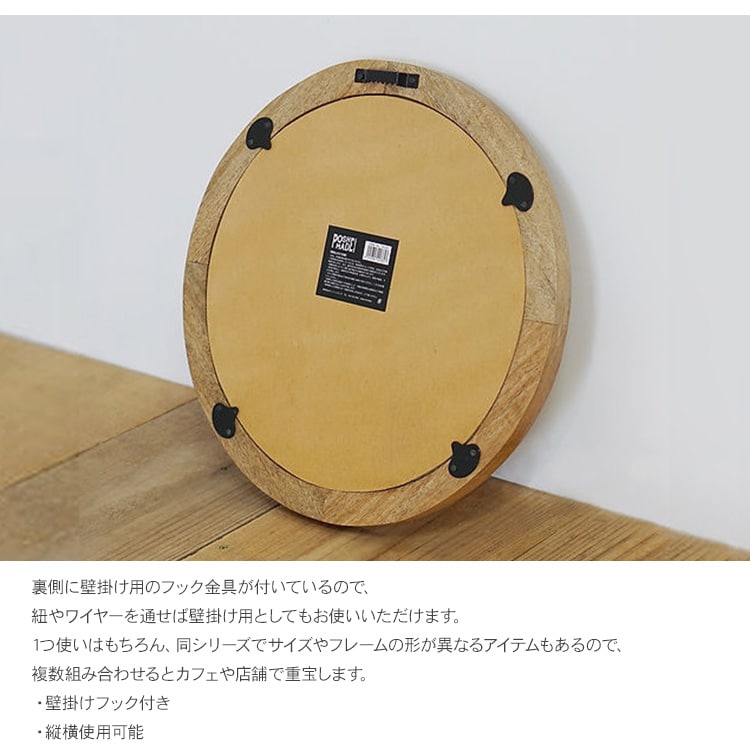 裏側に壁掛け用のフック金具が付いているので、紐やワイヤーを通せば壁掛け用としてもお使いいただけます。