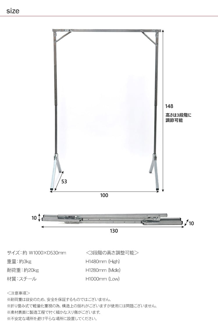 POST GENERAL ポストジェネラル エキシビション フォルダブルハンガーラック 高さ調整 折り畳み式 コートハンガー ラック 収納 衣類 コンパクト スチール スリム おしゃれ 組立不要 アイアン