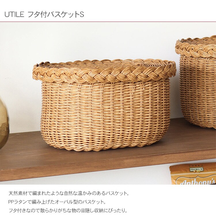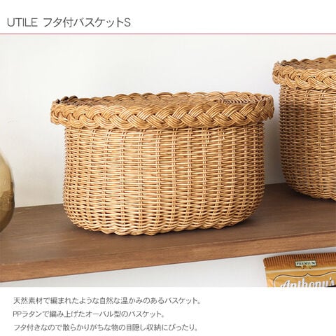 UTILE ユティル フタ付バスケットS 収納バスケット 収納カゴ 水拭き ランドリー収納 キッチン収納 北欧 おしゃれ ラタン