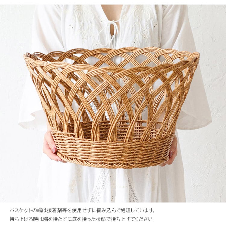 PPラタンで編まれた懐かしい雰囲気のバスケット。