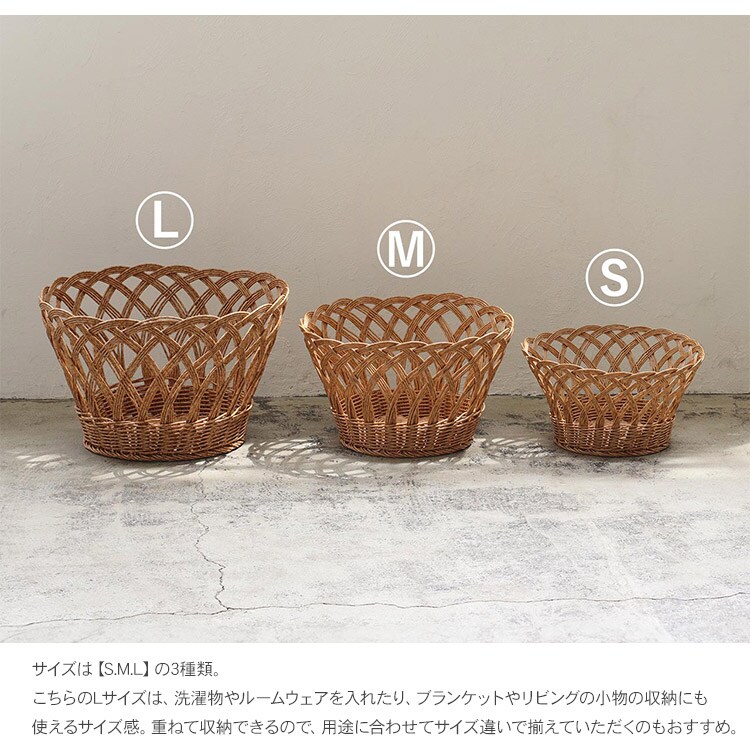 こちらのLサイズは、洗濯物やルームウェアを入れたり、ブランケットやリビングの小物の収納にも使えるサイズ感。
