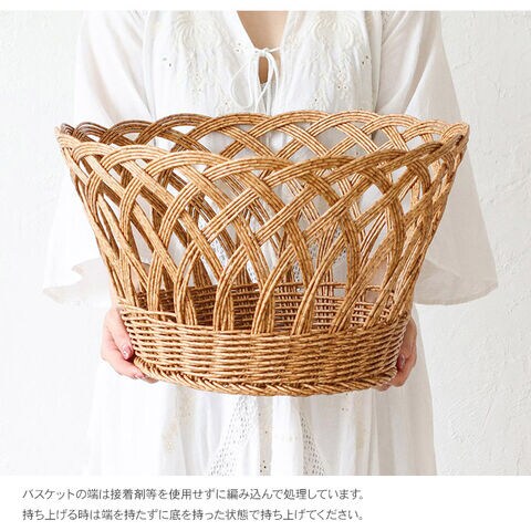 また、バスケットの端は接着剤等を使用せずに編み込んで処理しています。