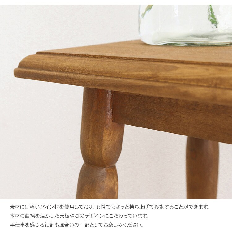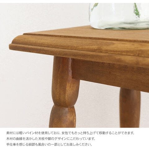 アンティークのような脚の装飾にこだわったハンドメイドの木製サイドテーブル。