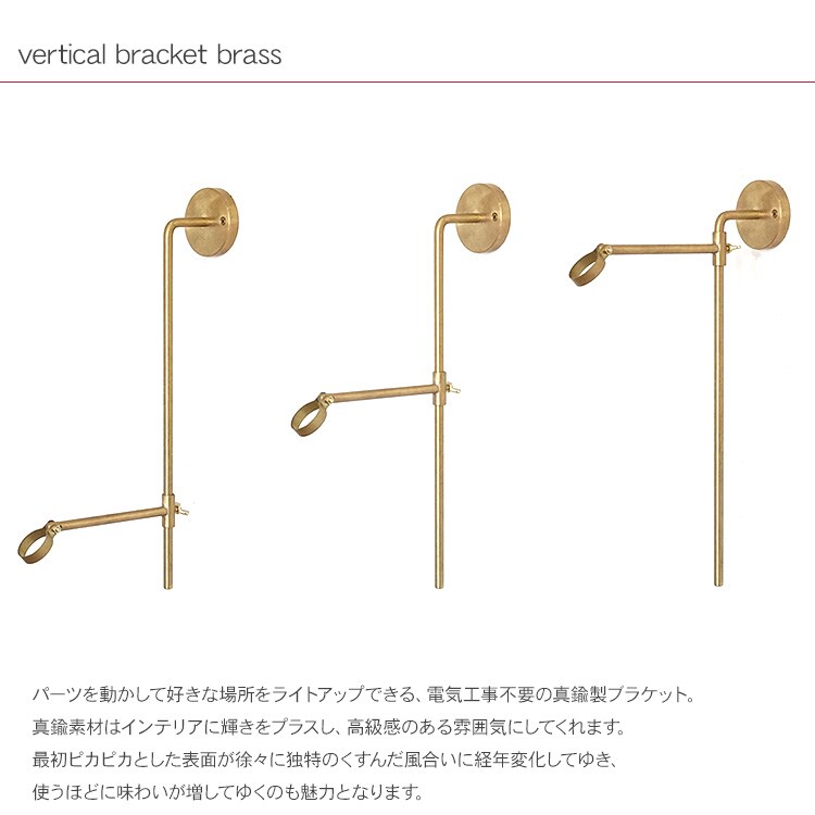 パーツを動かして好きな場所をライトアップできる、電気工事不要の真鍮製ブラケット。