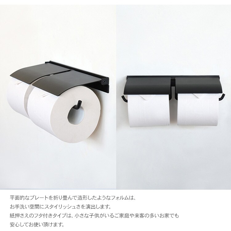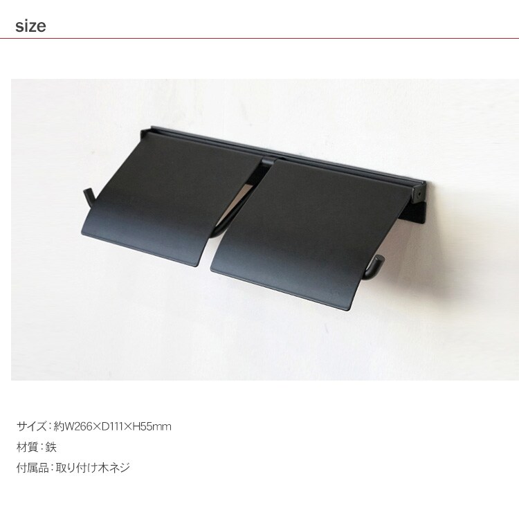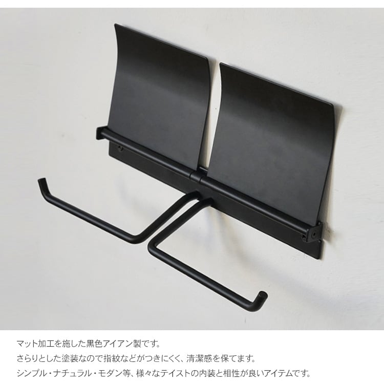 flap ペーパーホルダーダブル アイアン ブラック アイアン トイレットペーパーホルダー トイレ用品 ペーパーホルダー カバー 簡単 DIY シンプル おしゃれ