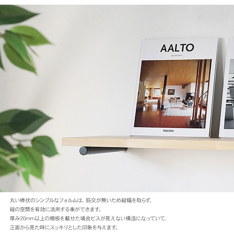 壁面にビスで取り付けて、棚板を乗せれば、ウォールシェルフを作る事ができます。