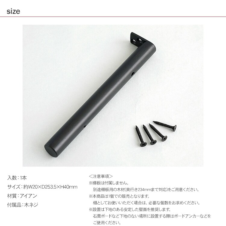 Iron Stick Shelf 250 ブラケット 棚受け 棚受け金具 アンティーク アイアン DIY 壁 飾り棚 取り付け 金具 インテリア おしゃれ シンプル