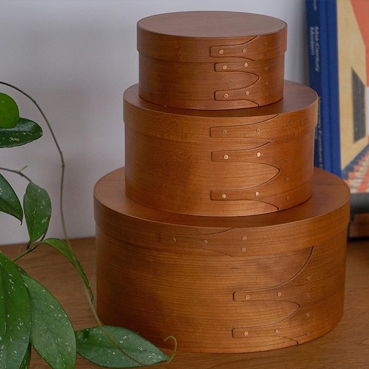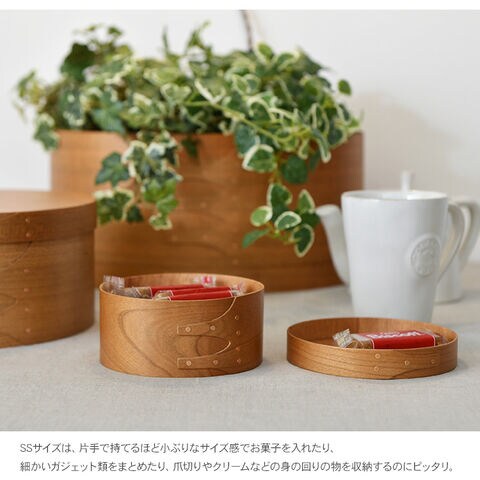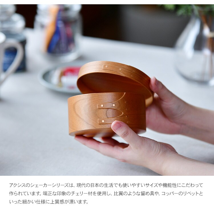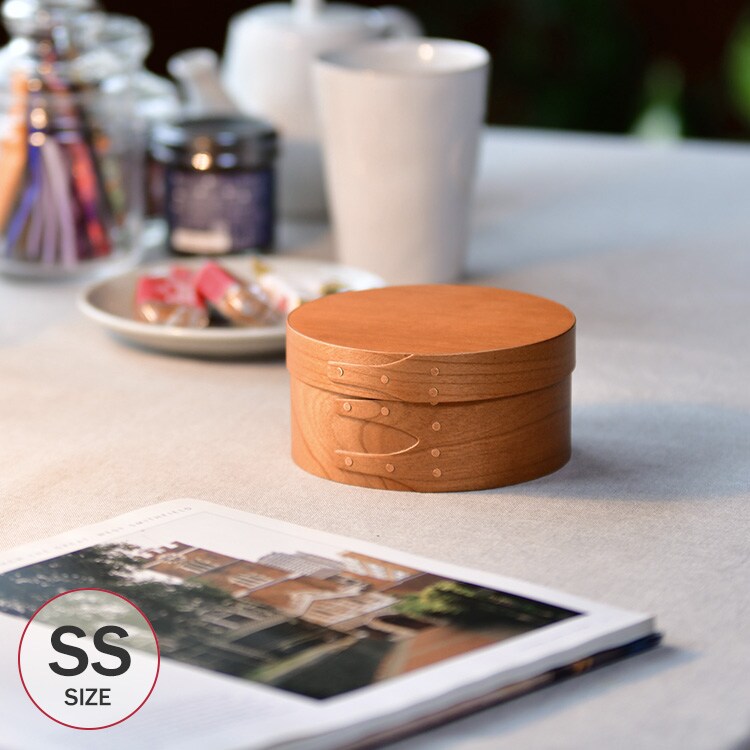 シェーカーボックスをモチーフにして作られた、正円型のラウンドボックス。