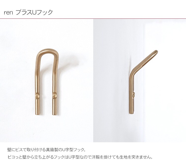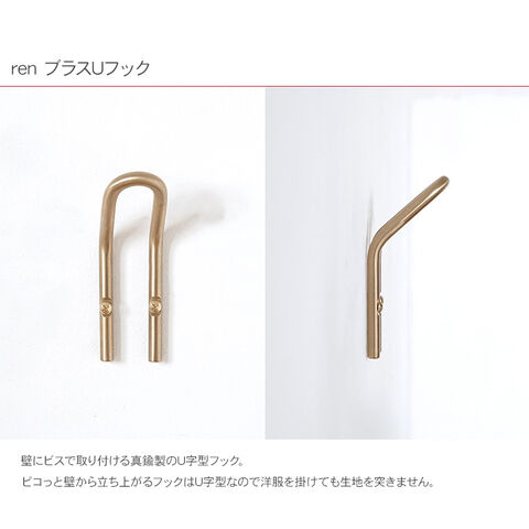 ren ブラスUフック ハンガーフック タオル掛け コート掛け 壁掛けハンガー 壁面収納 壁掛け DIY 真鍮