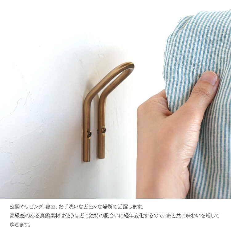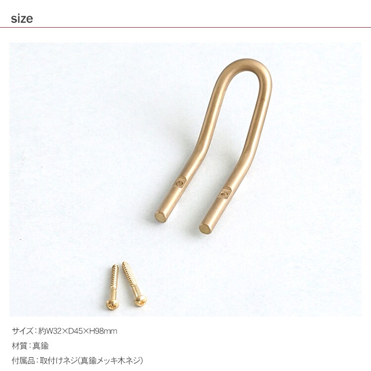 商品説明:壁にビスで取り付ける真鍮製のU字型フック。